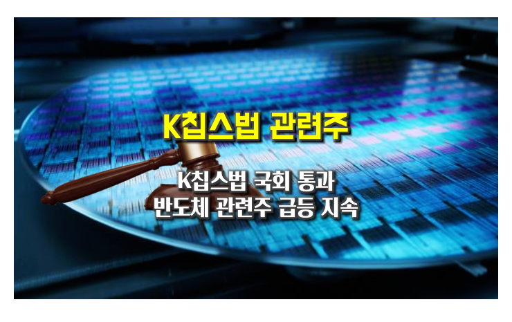 'K칩스법' 국회 통과에 삼성전자와 SK하이닉스 뿐만이 아니라 반도체 관련주들이 연일 상승을 이어가고 있습니다. 전문가들은 반도체 소・부・장 관련주에 관심을 가져볼 종목 발굴에 한창입니다.