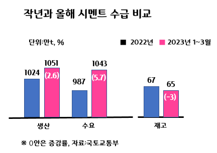 시멘트업계 관계자의 말을 빌리자면 "성수기엔 출하량엔 재고량을 더해 시멘트를 공급해 왔는데 설비보수에 수요까지 늘면서 재고를 쌓을 여력이 없었다"며 "재고 부족으로 성수기 공급부족 현상이 나타날 수 있다"고 우려했습니다.