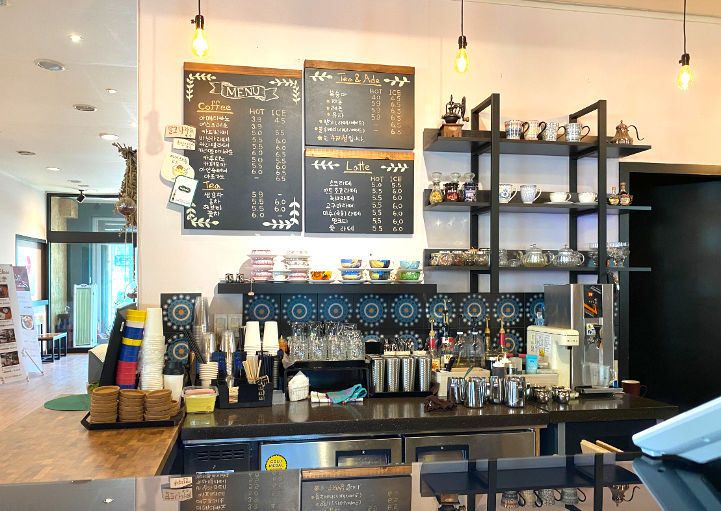 카페에서 이야기하는데도 바로 옆 테이블 신경쓰지 않아도 될 만큼 빈공간을 많이 두고 있어서