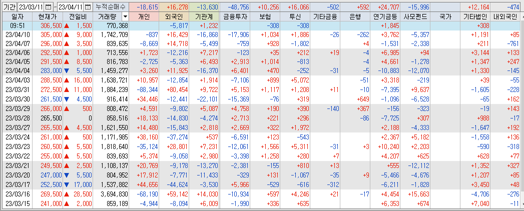 💁🏻 개인 누적순매수를 볼 때 고점 물림 주의가 필요합니다.