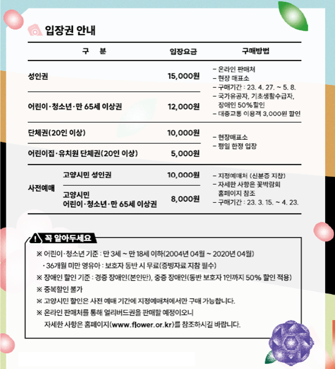 ※ 단, 고양시민 예매권, 얼리버드 입장권 등 할인권은 제외