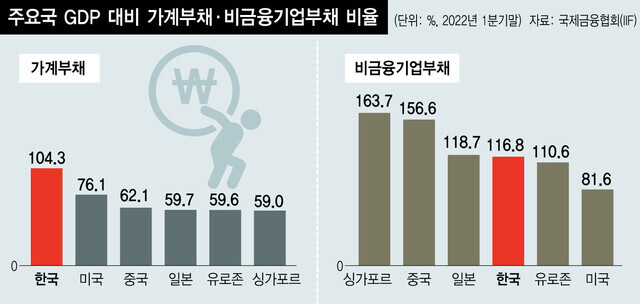 2022년 기록이지만 가계부채 비율은 가파르게 증가하는 추세입니다.