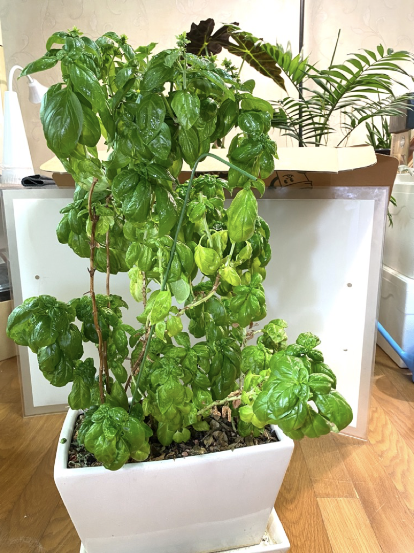 바질은 실내등에서 잘자라주고 있어서 파스타나 면요리 등의 토핑으로 또는 바질 페스토로 먹고 있습니다.