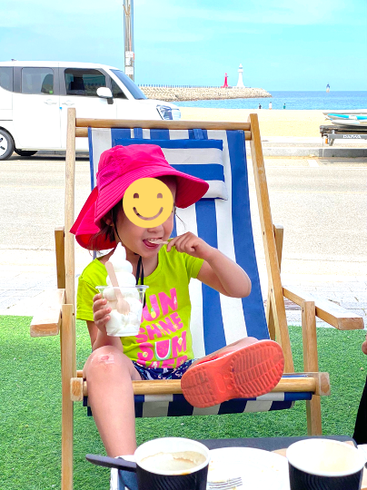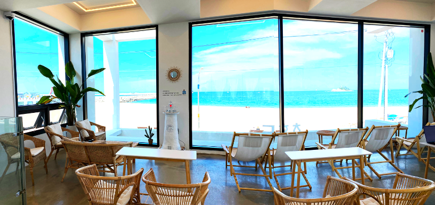 카페 앞 테라스에 앉아서 여름 바람과 함께 여유롭게 바다를 보면서 쉴 수도 있고