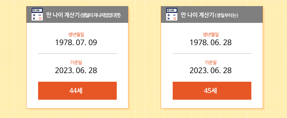 ‘만 나이’는 출생일 기준 0살로 시작하여, 생일이 지날 때마다 1살씩 더하는 방식으로 계산한다. 즉, 다같이 1월 1일에 1살씩 더하는 게 아니라 각자 생일에 1살씩 더하면 된다.