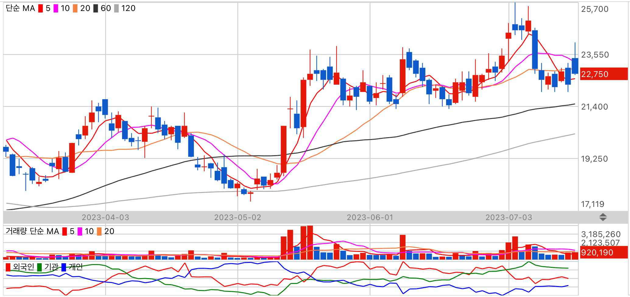 현재 가치는 저평가이며 업종모멘텀은 우수합니다. 수급 주체 기관의 동향을 주시해 주세요.