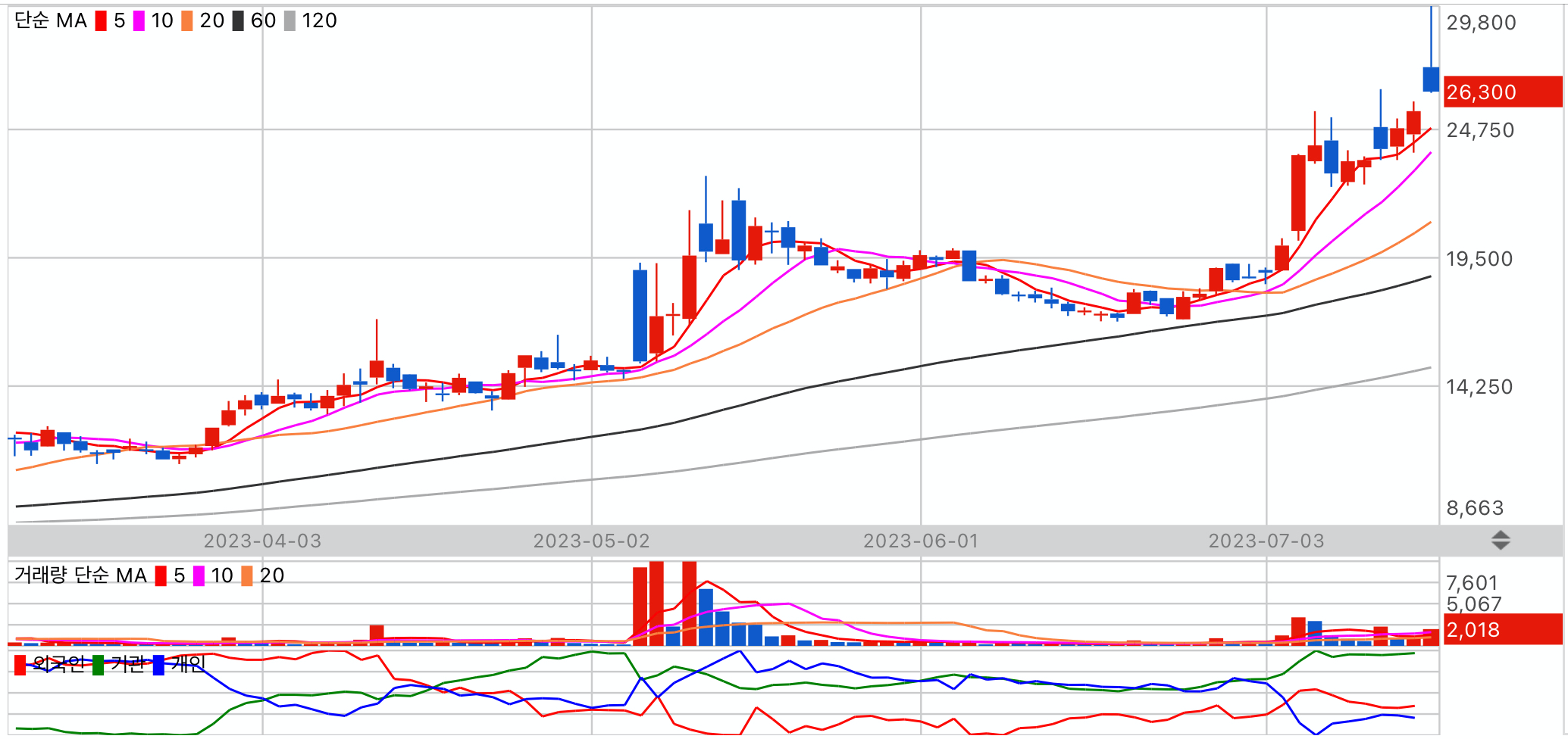 현재 가치는 고평가이며 업종모멘텀은 매우우수합니다. 수급 주체 외국인의 동향을 주시해 주세요.