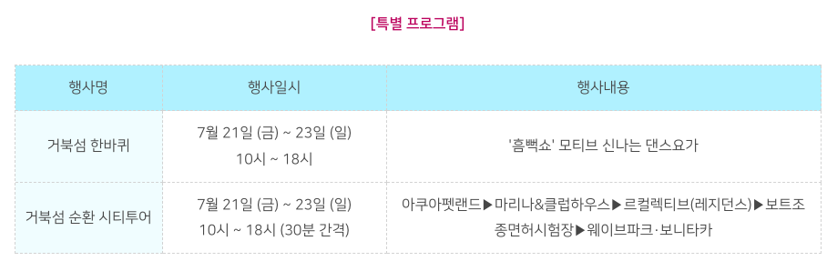 특별 행사로 거북섬 투어 관련한 프로그램이 마련되어 있네요.