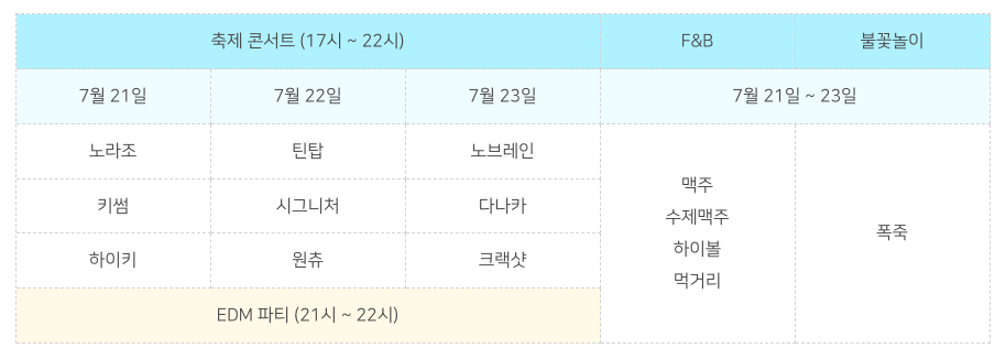 행사기간 : 2023.07.21토) ~ 07.23(일)