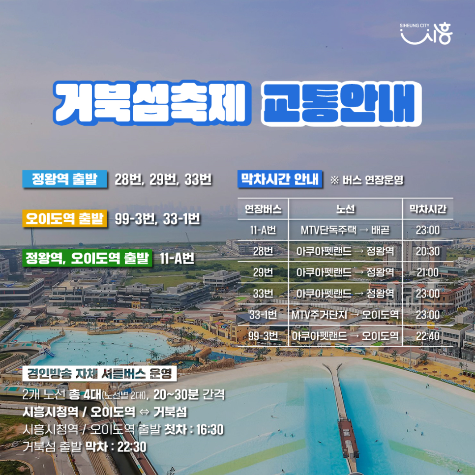 아래는 앞서 6월 29일 공지한 시흥MTV 거북섬 해양축제 행사내용입니다.