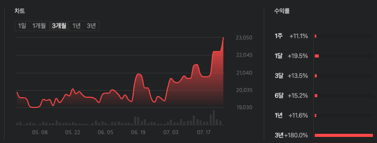 박스권 하단에서 매집을 해오고 있었다면 수익률은 다음 차트에서 보는 봐와 같습니다.