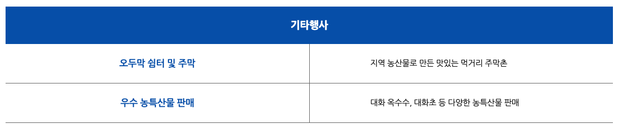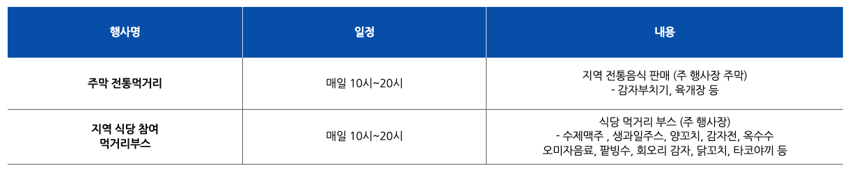 4. 기타 내용 : 올챙이국수, 메밀부치기, 평창 옥수수 등 지역 먹거리