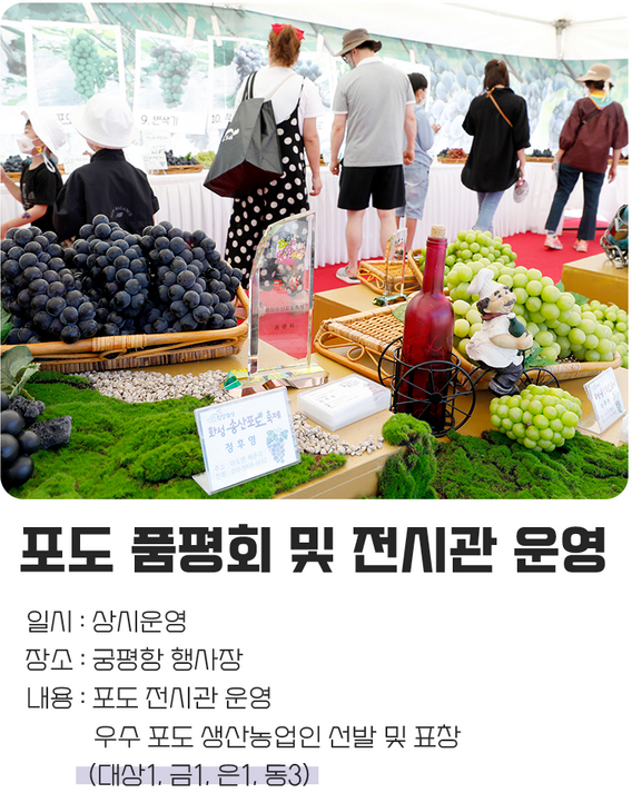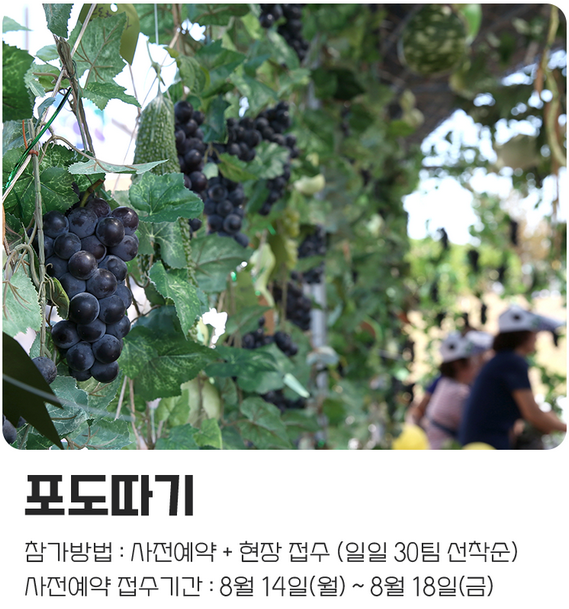 포도 밟기, 포도따기, 포도낚시, 포도품평회, 어촌체험 등 각종 체험과 게임이 마련돼 방문객들에게 즐거운 추억을 선사할 계획입니다.
