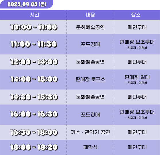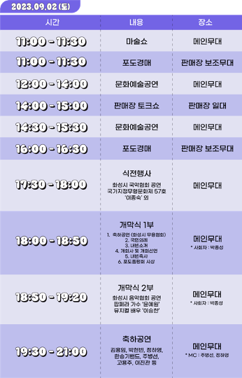 행사기간 : 2023.09.02(토) ~ 09.03(일)