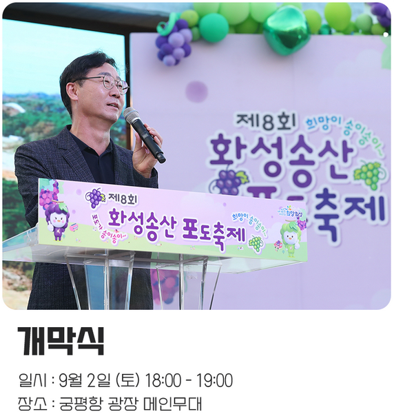그러면, 화성송산포도축제의 자세한 행사와 프로그램, 라인업, 체험행사에 대해서 알아볼까요.