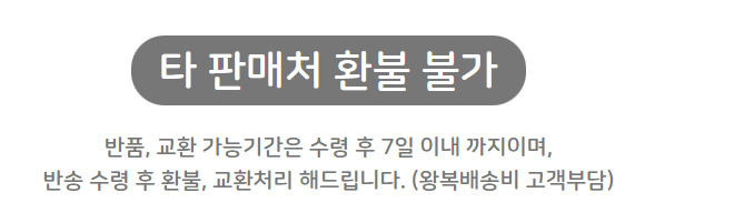 혹시나 구매 후 반품, 교환 환불은 7일이내에만 가능하다고 하니 참고하세요.