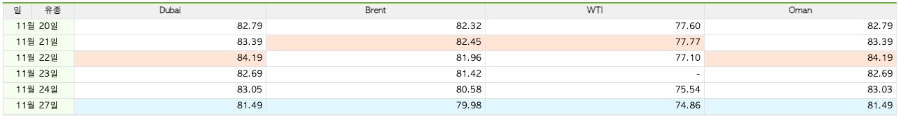 - DUBAI(현물) : 싱가포르에서 거래된 Dubai(현물) 가격 추정값