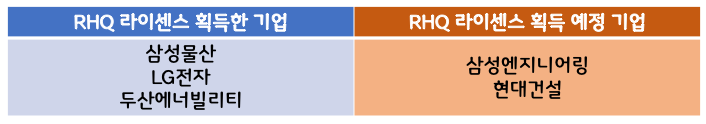 현재 국내 기업 중 RHQ 라이센스를 획득한 기업은 삼성물산, 두산에너빌리티, LG전자 3곳뿐이고 삼성엔지니어링과 현대건설은 막바지 작업 중입니다.