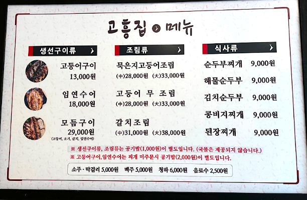 메뉴도 생선구이와 생선조림, 찌개도 다양합니다.