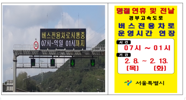 설 연휴 경부고속도로 한남대교 남단 ~양재 IC 버스전용차로 새벽 1시까지 연장 / 서울시