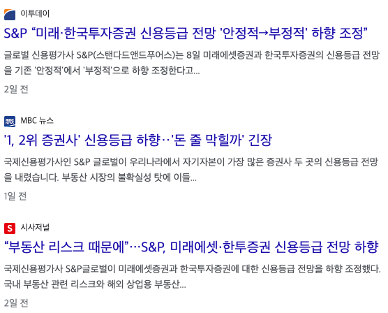 “부동산 리스크 때문에”…S&P, 미래에셋‧한투증권 신용등급 전망 하향