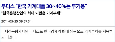 무디스, 한국 은행시스템 등급전망 ‘부정적’
