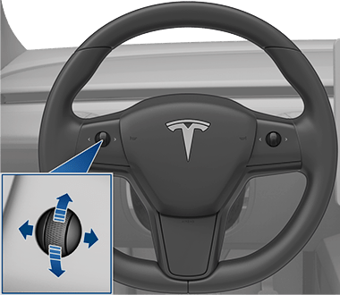 오른쪽 스크룰 휠은 오토스티어 시작 및 최대 속도 제한과 같은 오토파일럿 기능을 제어합니다.
