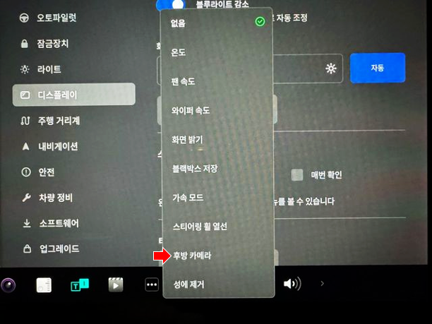 또 한 가지 볼 것은 '후방 카메라'를 켜고 끄는 기능을 영상으로 보시겠습니다.