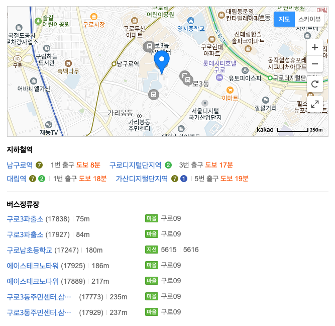 구로디지털단지역 보다는 남구로역에 가깝고 드림마크원 건물 뒷편에 있습니다.