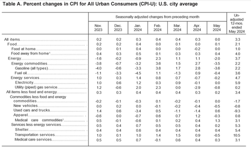 지난 5월 미국의 물가상승률이 둔화하는 흐름을 나타냈다. 소비자물가지수(CPI)의 모든 주요 지표가 예상치를 하회했습니다.