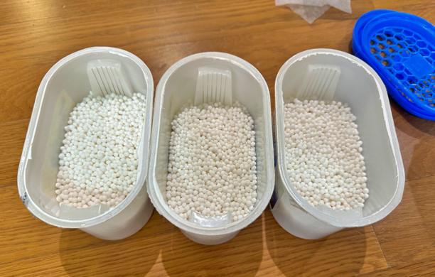 염화칼슘을 제습제 용기에 담습니다. 대략 1cm 정도 높이로 담으시면 됩니다.