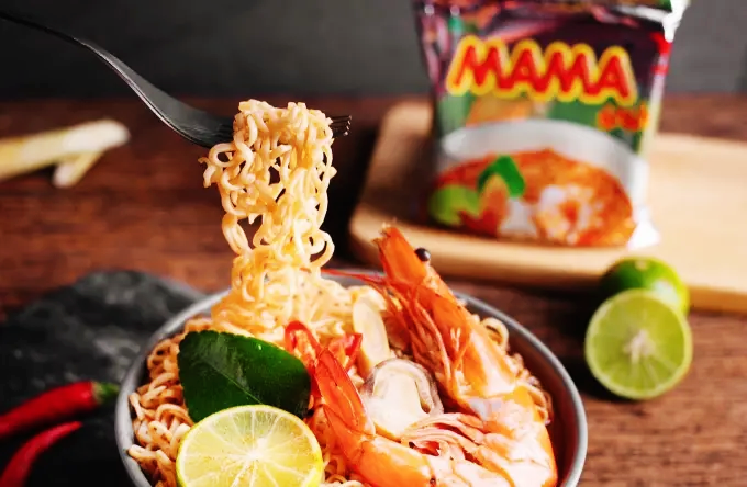태국 라면은 새콤, 달콤, 짭짤한 맛이 어울어진 것이 많으며 인기 있는 태국 브랜드는 마마, 와이와이, 얌얌입니다.