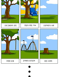 반응형 프로젝트관리24 [개발] 선호하는 소프트웨어 개발단계는 ? 코드 프로젝트에서 설문조사가 있었다.개발자가 선호하는 소프트웨어 (프로젝트) 개발의 단계에 대하여 설문조사를 하였다. 2013년 5월 13일부터 20일까지 8일간 하였는데 그 결과가 나의 어렴풋한 생각과 맞아 떨어졌다. 비단 소프트웨어 뿐만 아니라 대부분의 일에서.... 일을 벌리기는 쉬워도 일을 마무리하거나 책임지는 것 어렵고 부담스러울 수 밖에 없다.그러한 패러다임이 설문조사에도 고스란히 반영된 것이다. 자, 위의 설문조사 결과에서 상위 3가지와 하위 3가지를 살펴보자.선호하는 절차는 1. 프로젝트 설계와 아키텍처2. 메인 개발: 정의된 프레임워크와 시동 코드3. 프로젝트 스타트업: 첫 코드 작성 선호하지 않는 절차는1. 유지보수2. 배포와 설치3. QA, 테스트와 오류 수정 뭐, 이런 생각을 안해 .. 2013. 5. 21. [개발/컬럼] 개발 프로젝트의 단계별로 나타날 수 있는 Risk 개발 프로젝트의 단계별로 나타날 수 있는 Risk 2004.01.27 16:47 류(ryujt) http://cafe.naver.com/codeway/15 1. 입찰 혹은 영업 단계(Proposal Phase) - 사업주 요구조건(Requirements) 이해 부족 - 자체 사업수행 능력의 과대평가 - 공기 예측의 실패 2. 사업기획단계 (Planning Phase) - 항목누락(Omissions) - 업무분류체계(WBS:Work Breakdown Structure) 작성미숙 - 수집정보의 잘못 이해 및 적용 - 견적(Estimating) 기술의 선택 - 주요 비용요소(Major Cost Elements) 관리의 실패 - 사업위험(Risks) 평가 및 설정의 실패 3. 계약 협상 단계 (Negotiati.. 2012. 5. 17. [IT/개발] 프로젝트 관련 용어 정리 [IT/개발] 프로젝트 관련 용어 정리 두서없이 정리된 용어이다. 기본기가 있어야 더욱 더 커뮤니케이션과 실무가 쉽다. beta version [베타 버전] 소프트웨어를 정식으로 발표하기 전에 미처 발견하지 못한 오류를 찾아내기 위해, 회사가 특정 사용자들에게 배포하는 시험용 소프트웨어. 베타 버전은 시간이 경과하면 사용하지 못하도록 장치가 되어 있거나 정식 제품이 아님을 표시하는 문구가 표시되어 있는 경우가 많다. Alpha Version [알파버전] 개발 도중의 하드웨어/소프트웨어에 붙는 제품 버전. 개발 초기 단계에서 개발 기업 내 또는 일부의 사용자에게 배포하여 시험하는 초기 버전으로, 일반적으로 불안정한 상태에서 알파 시험(Alpha Test)을 거쳐 문제점을 보완 한 후 다음 단계인 베타 버전.. 2012. 4. 6. [개발/컬럼] 프로젝트관리의 현실 [개발/컬럼] 프로젝트관리의 현실 프로젝트 관리의 고객과 시행업체, 그리고 시행업체 내에서 부서간의 이견을 좁히지 못하고 이해관계가 얽히고 설켜서 나타나는 현실을 그림 하나로 잘 표현한 내용입니다. 2011. 5. 25. [IT/개발] 프로젝트 관련 용어 정리 두서없이 정리된 용어이다. 기본기가 있어야 더욱 더 커뮤니케이션과 실무가 쉽다. beta version [베타 버전] 소프트웨어를 정식으로 발표하기 전에 미처 발견하지 못한 오류를 찾아내기 위해, 회사가 특정 사용자들에게 배포하는 시험용 소프트웨어. 베타 버전은 시간이 경과하면 사용하지 못하도록 장치가 되어 있거나 정식 제품이 아님을 표시하는 문구가 표시되어 있는 경우가 많다. Alpha Version [알파버전] 개발 도중의 하드웨어/소프트웨어에 붙는 제품 버전. 개발 초기 단계에서 개발 기업 내 또는 일부의 사용자에게 배포하여 시험하는 초기 버전으로, 일반적으로 불안정한 상태에서 알파 시험(Alpha Test)을 거쳐 문제점을 보완 한 후 다음 단계인 베타 버전으로 진행한다. 시스템 담당자 구분 H/.. 2011. 2. 7. [개발/자기경영] "개발자에 필요한건 문제해결 능력" 'SW 마에스트로' 연수생 구글 본사 방문… 선배들과 간담회2011년 01월 07일 "좋은 소프트웨어(SW) 개발자의 조건은 명문대 졸업여부가 아니라 창의력과 문제에 접근하고 해결하는 능력이다.", "초가집을 수 백 채 지어봤다고 63빌딩을 건설할 수 없다. SW 개발도 우선 역량을 크게 키워야 한다." 실리콘밸리를 방문한 한국의 SW 꿈나무들에게 미국 구글 본사에서 근무하고 있는 한국인 SW 엔지니어들은 창의력을 바탕으로 더 높은 곳으로 비상해야한다고 조언했다. 5일(현지시간) 지식경제부, 정보통신산업진흥원, 한국정보산업연합회 등이 주관하는 SW 마에스트로 미국 연수의 일환으로 구글을 방문한 학생들은 직원들의 언제든 즐길 수 있는 게임기와 카페테리아 등 자유로운 업무환경을 돌아봤다. 이어진 구글 본사에.. 2011. 1. 26. [개발/기획] 멀티미디어 컨텐츠기획 -스토리보드 작성- 프로젝트를 진행하기 위해서 기획단계에서부터 구현이전단계까지 스토리보드라는 것이 만들어집니다. 그러면, 이 스토리라는 것은 무엇이고 스토리보드에 필요한 것은 무엇인지 알아보자. 스토리보드란 프로젝트를 설계하는 디자인 설명서입니다. 개발 기획서가 프로젝트 개발의 청사진이라면 플로우차트는 타이틀의 인터랙션을 나타내는 것이고 스토리보드는 설계도이자 구체적인 작업지침서입니다. 스토리보드가 완성되면 디자이너는 스토리보드에 명시된 내용에 따라 화면 디자인을 하고 일러스트를 제작합니다. 프로그래머는 스토리보드를 보고 프로그램 설계를 하고 각 세부 로직을 프로그래밍하게 됩니다. 스토리보