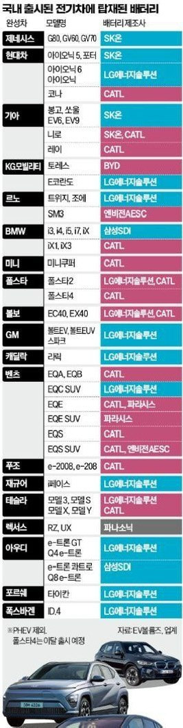 전기차에 탑재된 배터리 제조사 공개