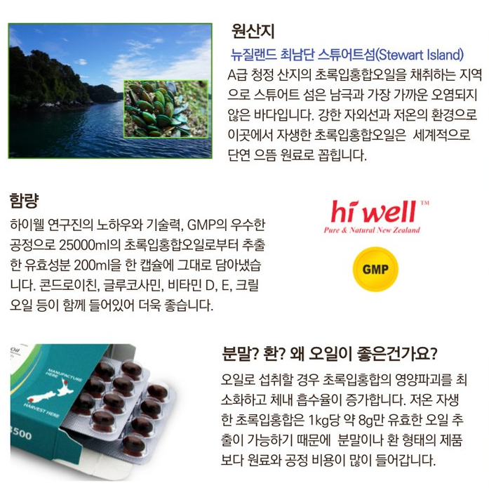 뉴질랜드 자연의 건강함을 그대로 담은 초록입홍합오일
