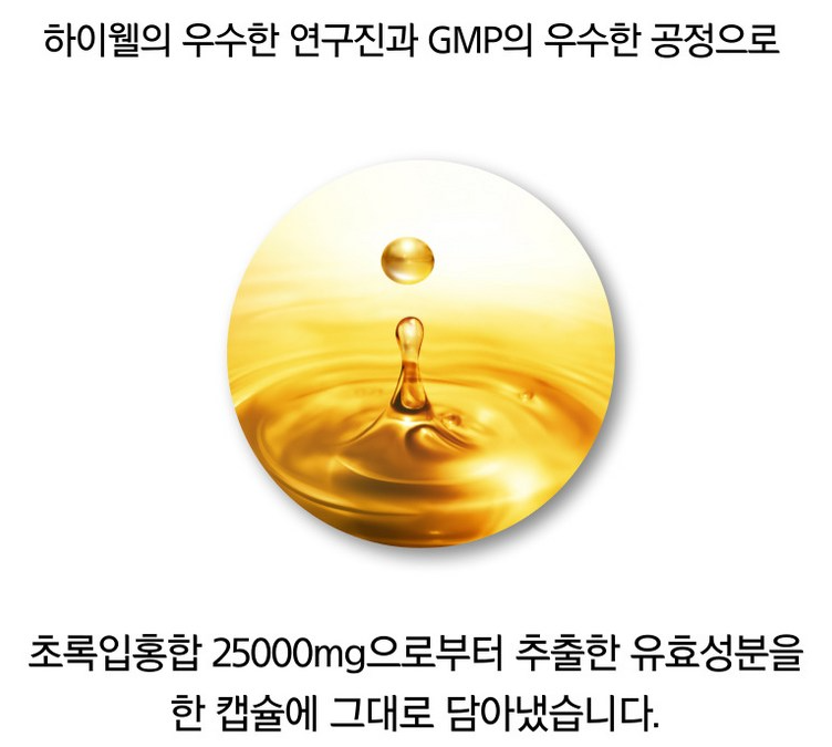 하이웰 우수한 연구질과 GMP 우수한 공정으로 '초록입홍합 25000mg'으로부터 추출한 유효성분을 한 캡슐에 그대로 담아내었다고 합니다.