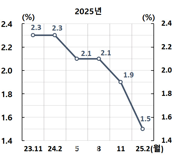 | 한국은행 (2.25) | 1.5%(1.9%) | 1.8%(1.8%) | ||