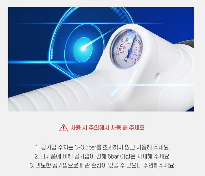 🔺 사용시 반드시 공기압을 확인해서 너무 강하지 않게 사용하세요 🔺