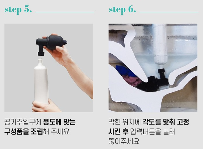 4️⃣ 펌프를 눌러 강력한 압력 생성 (발에 끼고 할 경우)