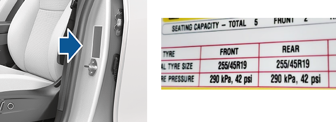 타이어가 차량 구매시 장착된 타이어가 아닌 경우 타이어의 적정공기압을 확인하는 방법.
