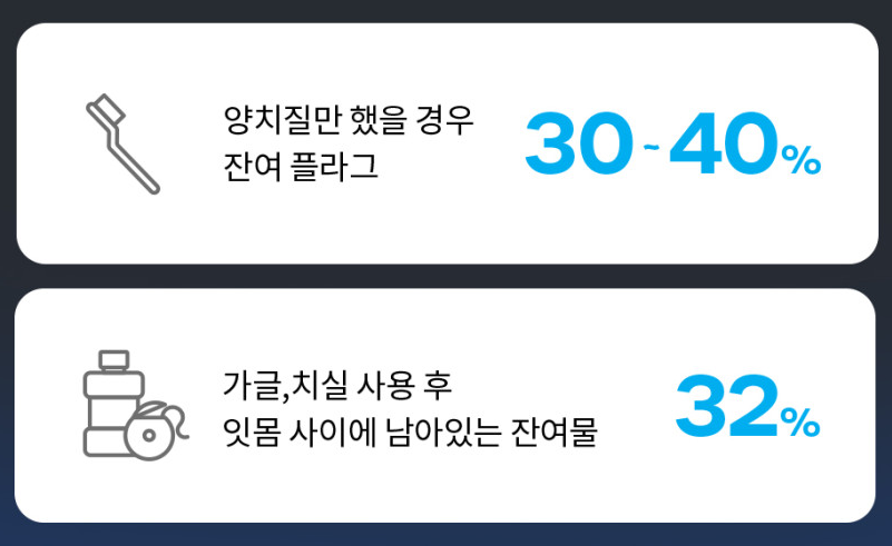 100% 제거되지 않은 구강 내 플라그와 각종 잔여물들은 구취, 충치, 염증, 이물감, 출혈 등