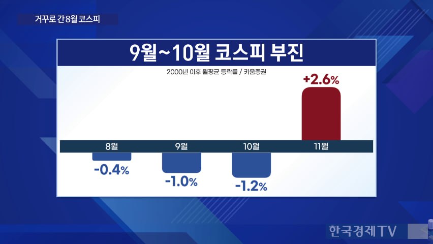 아래 차트는 2000년 이후 9월~11월코스피 등락률입니다. 참고용으로 보세요.
