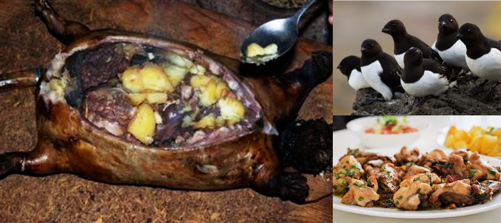 키비악은 어린 오크(바다새)를 물개 가죽에 넣어 발효시킨 그린란드 이누이트족의 전통적인 겨울 요리입니다.