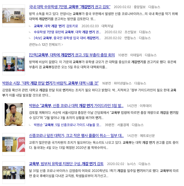 대학 개강을 2주정도 늦춰줄 것을 당부했다고 합니다.