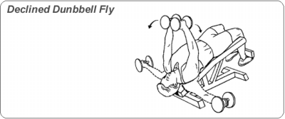디클라인 덤벨 플라이는 팔을 편 상태에서 껴안듯이 위로 올리며, 손바닥이 안으로 향하게 덤벨을 잡습니다.