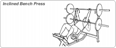 30도 정도의 각도가 있는 벤치를 이용한 벤치 프레스입니다. 가슴의 상부를 집중적으로 발달시킵니다.
