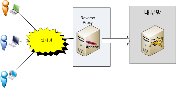 망 밖에서 내부로의 서비스 이용은 리버스 프록시