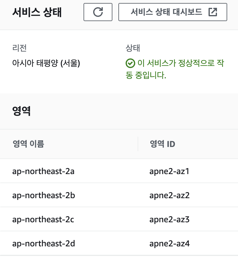 서비스 상태에서 보이는 우리가 사용할 Region과 Available zone이란