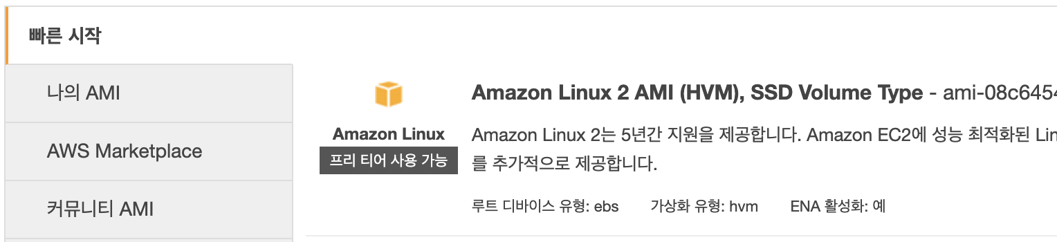 | 단계1 AMI선택 | Amazon Linux 2 AMI |