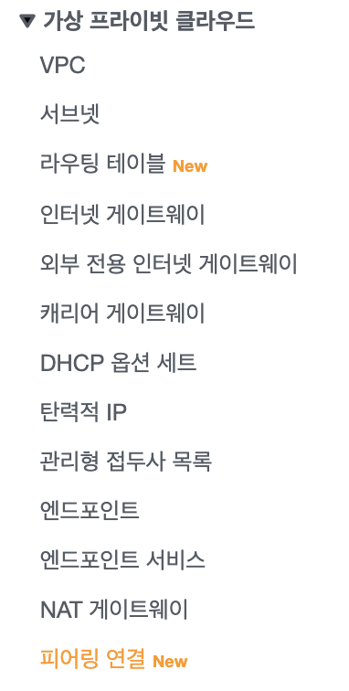 서울리전의 피어링 연결 메뉴로 이동합니다.